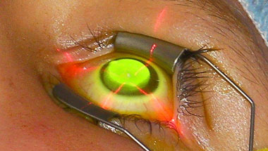 Tratamiento, La base del tratamiento es primero detener la progresión de queratocono para lo que si el paciente es joven se debe realizar el Crosslinking que consiste en un procedimiento de altísima efectividad, en quirófano, y que puede realizarse los dos ojos a la vez si se requiere, con anestesia tópica en forma de gotas. La intención es instilar en la córnea vitamina B bajo una luz ultravioleta, para endurecerla y evitar que se deforme en el futuro.